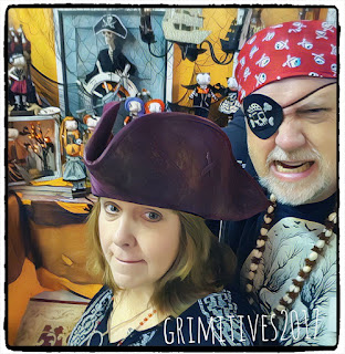 She has blue glass, stitched on black wool nose. Wire mouth with tiny seed beads for teeth.